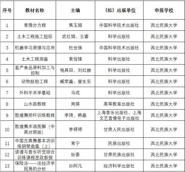 甘肃省“十四五”普通高等教育省级规划教材建设项目名单