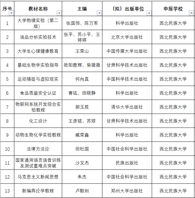 甘肃省“十四五”普通高等教育省级规划教材认定名单