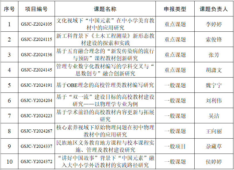 甘肃省教育厅2024年大中小学课程教材专项研究课题立项名单