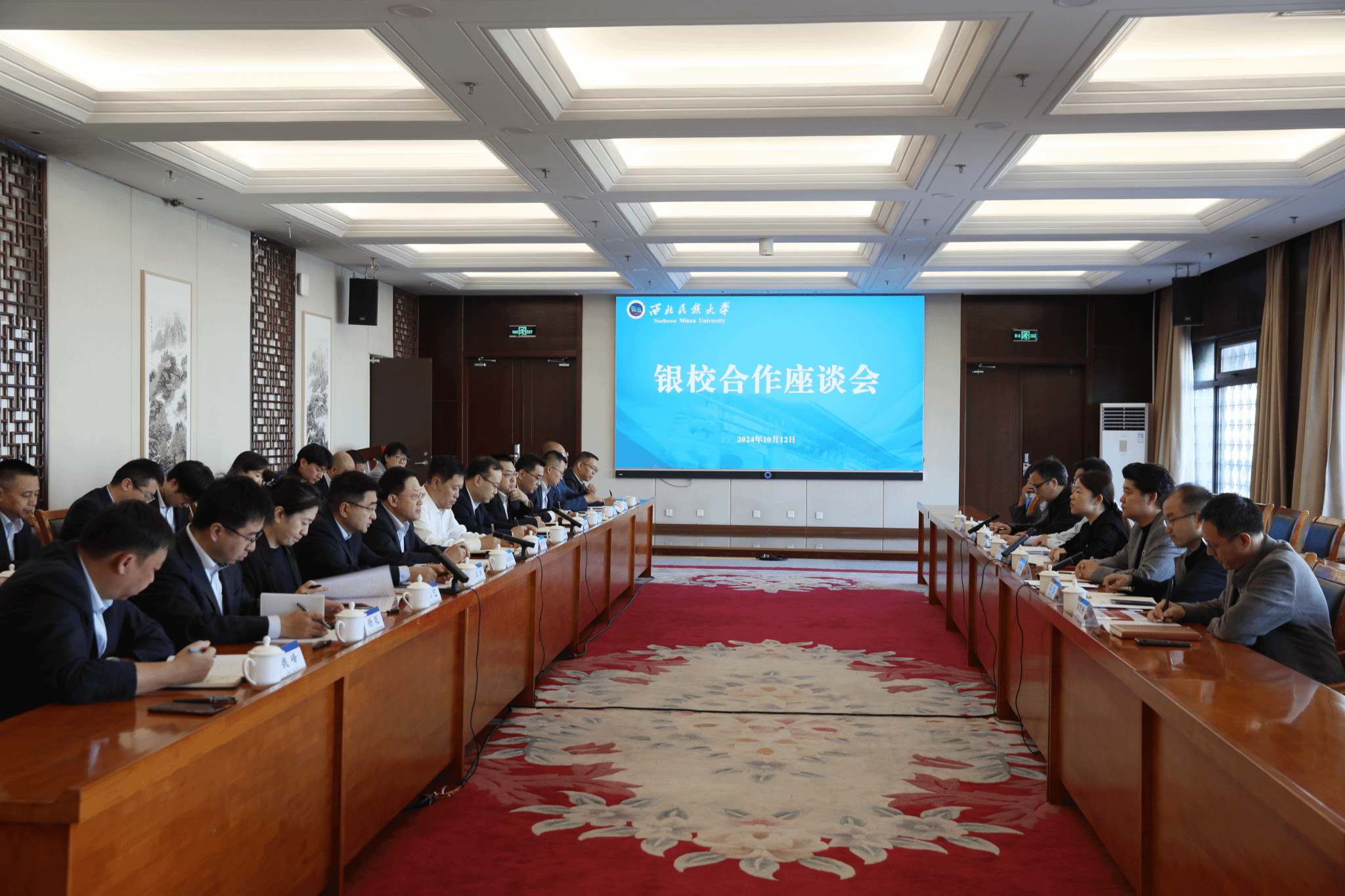 中国建设银行、中国农业银行、中国银行甘肃省分行相关部门负责人,兰州银行民大支行、招商银行中央广场支行负责人,学校相关部门负责人参加座谈。